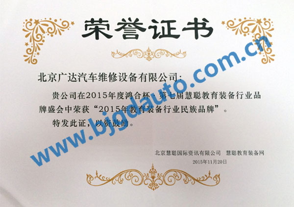 2015民族品牌證書(shū)